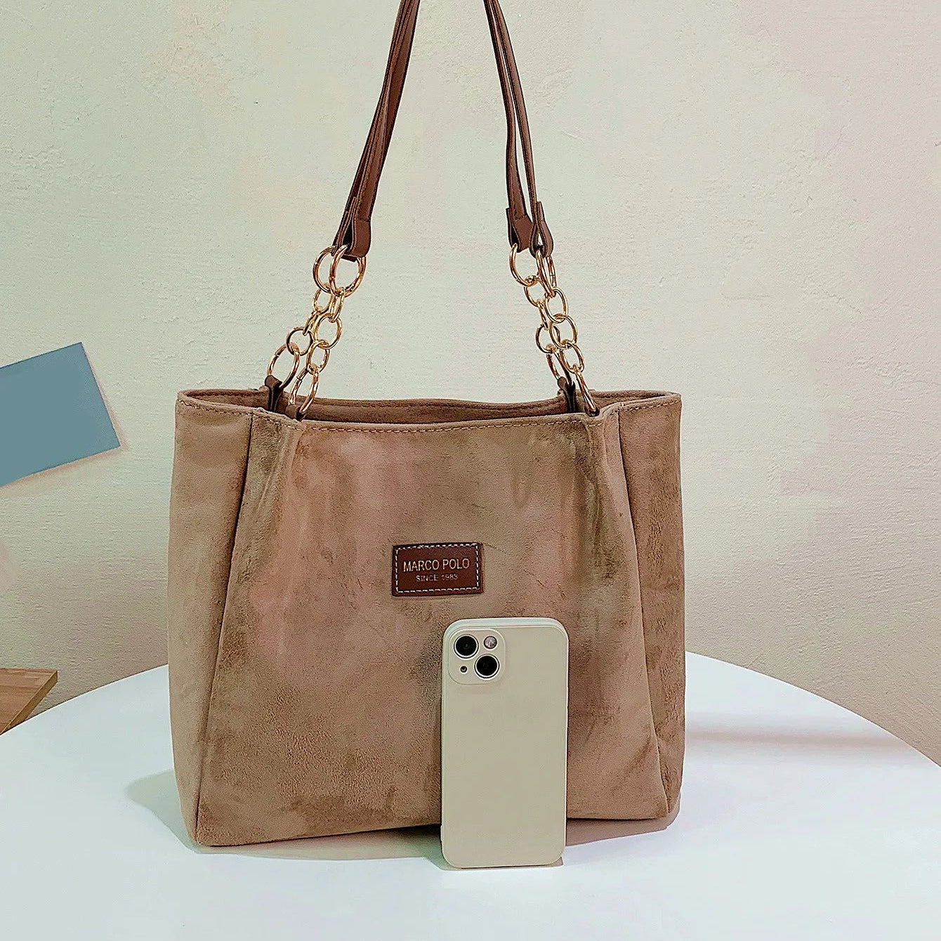 The Marco Polo Tote redefines everyday elegance with its minimalist khaki suede finish and refined silhouette. Spacious enough for work essentials yet chic for casual outings, it offers the perfect balance of function and sophistication.
